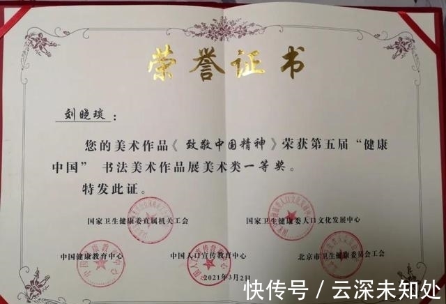 日前,由国家卫生健康委宣传司指导,国家卫生健康委直属机关工会、国家卫生健康委人口文化发展中心、中国健康教育中心、中国人口宣传教育中心和北京市卫生健康委工会联合举办,国家卫生健康委书法美术协会承办的“弘扬伟大抗疫精神庆祝共和国华诞”——第五届“健康中国”书法美术作品展在北京举办。泰安市中心医院药学部主管药师刘晓琰的美术作品《致敬中国精神》荣获一等奖并在国展中心展出。
